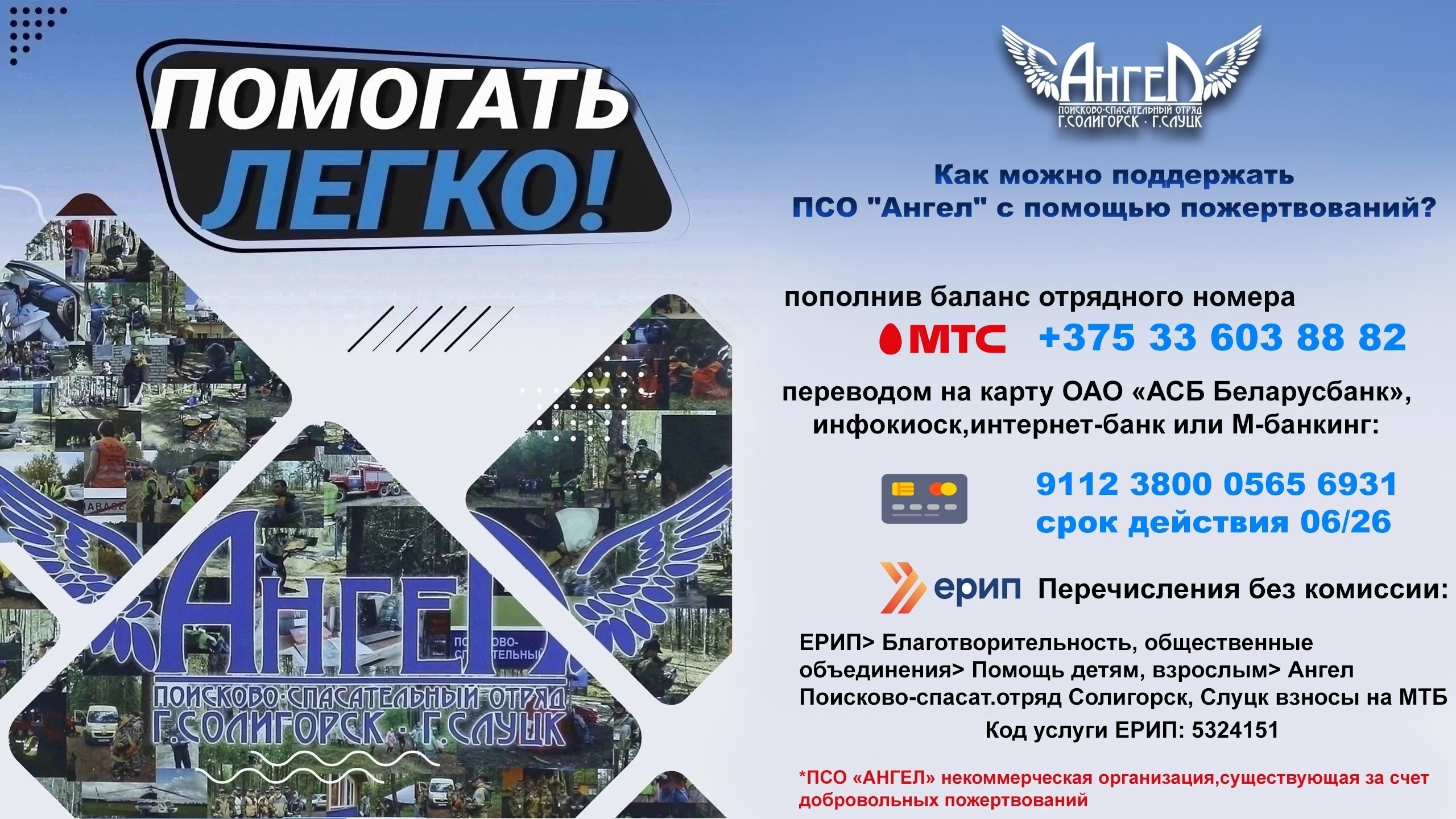 Как можно поддержать ПСО "Ангел" г. Солигорска - г. Слуцка с помощью пожертвований?