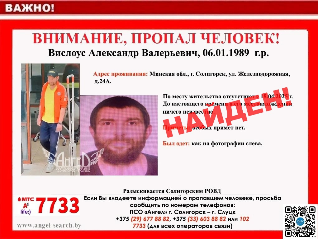 Вислоус Александр Валерьевич (06.01.1989 г.р.) найден, жив.